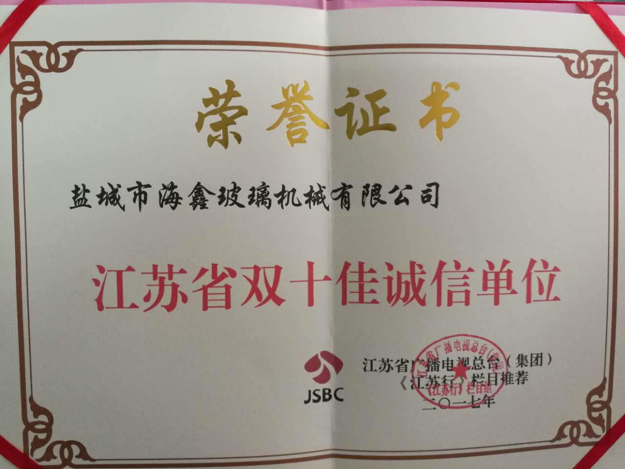 • 江蘇省雙十佳誠(chéng)信單位